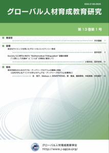 会誌『グローバル人材育成教育研究』(ISSN 2188-3505)最新号の表紙(目次付き)とバックナンバー